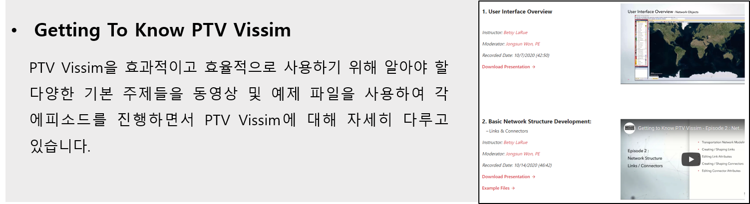 Getting to know PTV Vissim covers various basic topics which you will need to be aware to be able to use PTV Vissim effectively and efficiently. You can go through each episode at your pace and get to know more about PTV Vissim by using: Video recordings,