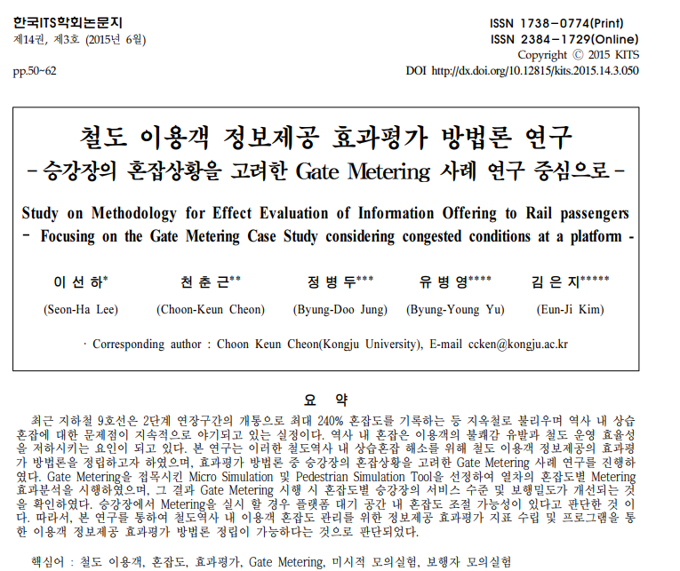 | (2015) Simulation 기반 LOS에 따른 역사 시설별 적정규모 산정 (0) | 2021.10.26 |