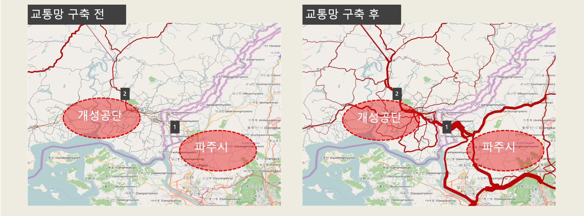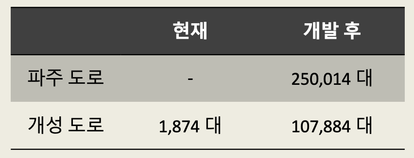 - 개성공단의 배후도시로 파주시가 개발 됨에 따라 남북의 교류가 활발해져 많은 교통량이 이동하게 됨