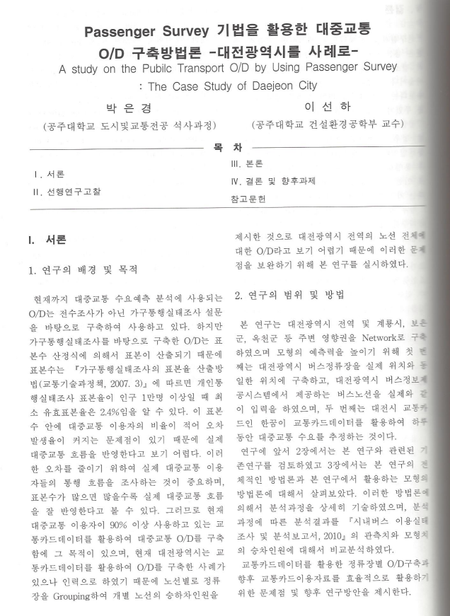 - 향후 교통카드 이용자료를 효율적으로 활용하기 위한 문제점 및 향후 연구방안 제시