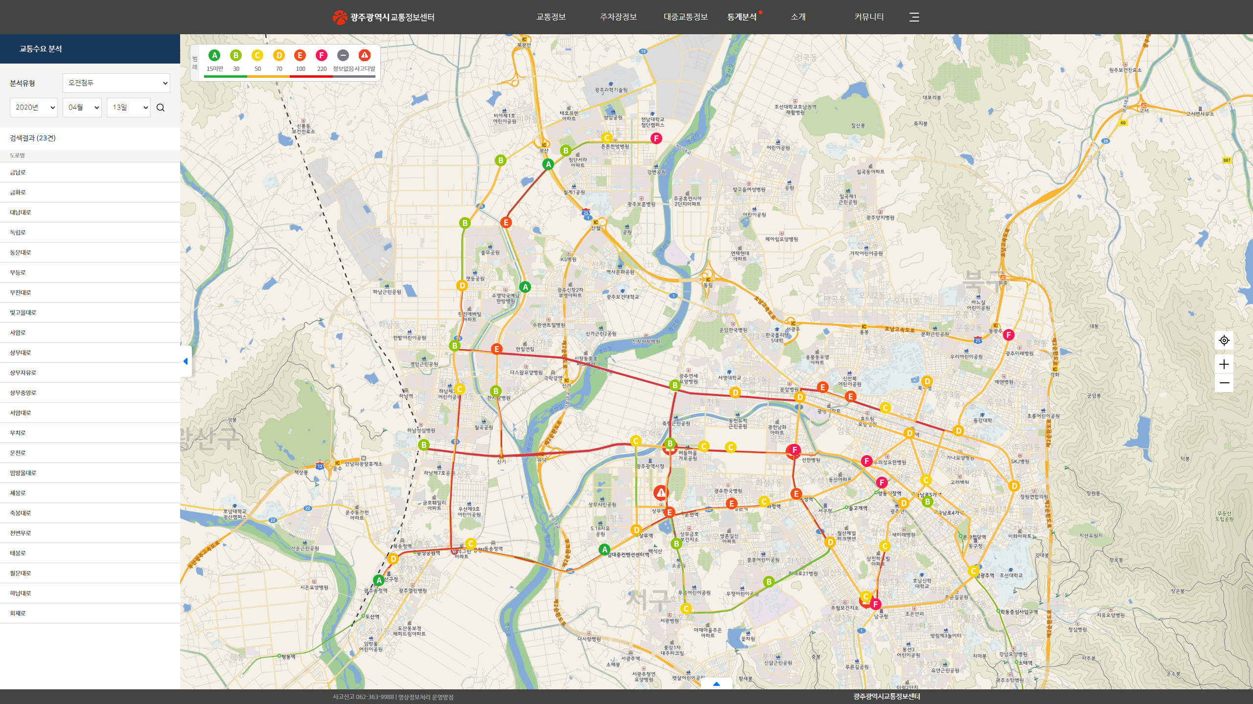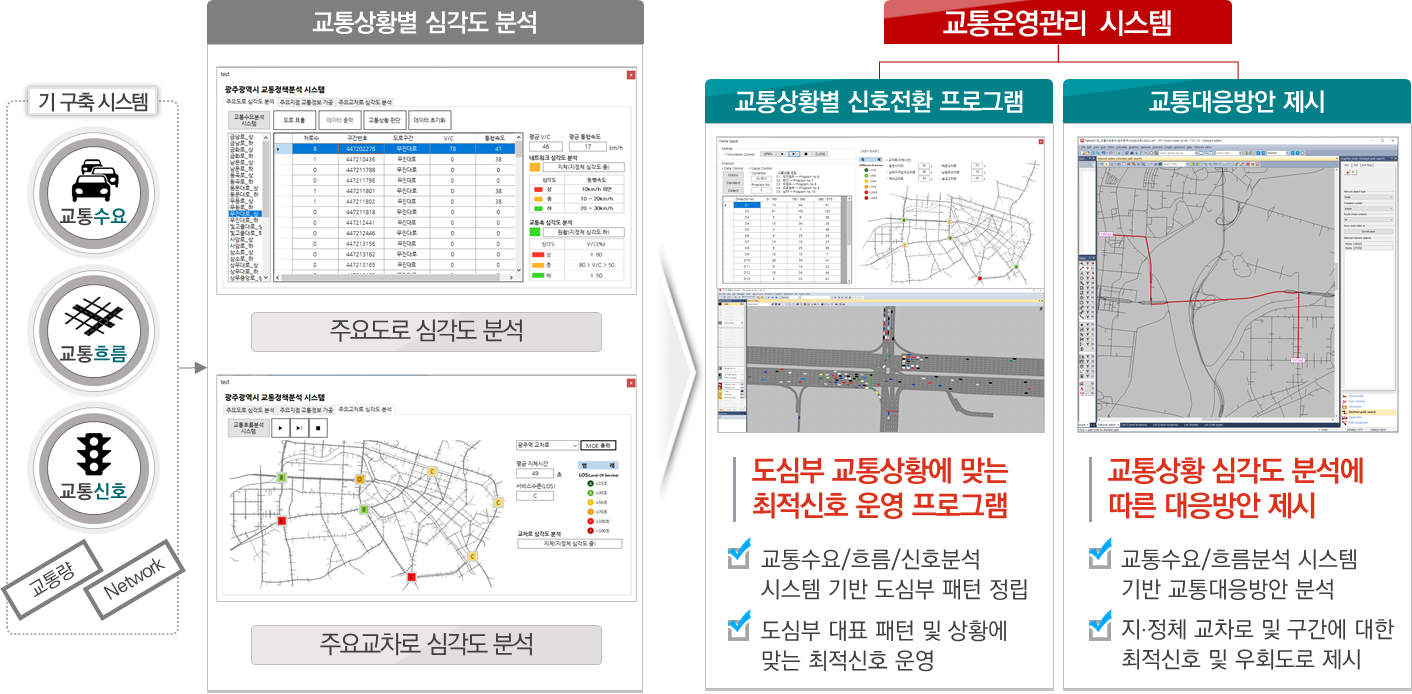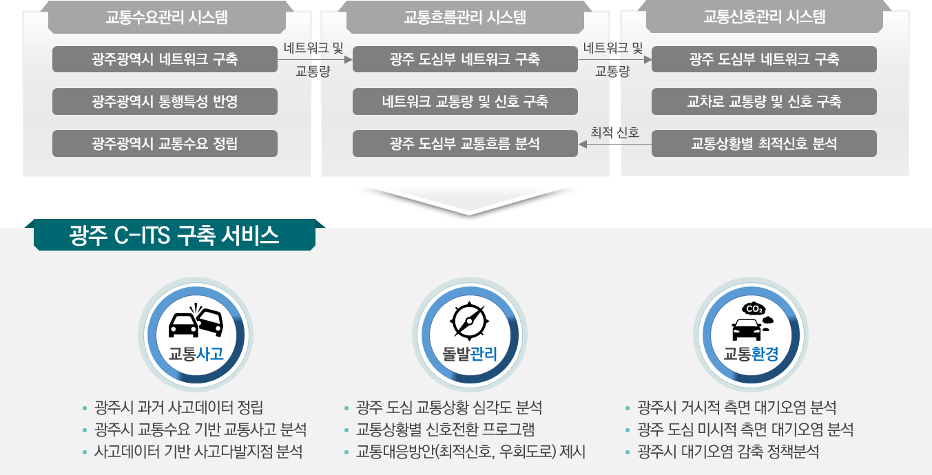 광주광역시 C-ITS 실증사업의 교통분석 솔루션은 먼저 교통수요/교통흐름/교통신호분석 시스템 구축을 기반으로