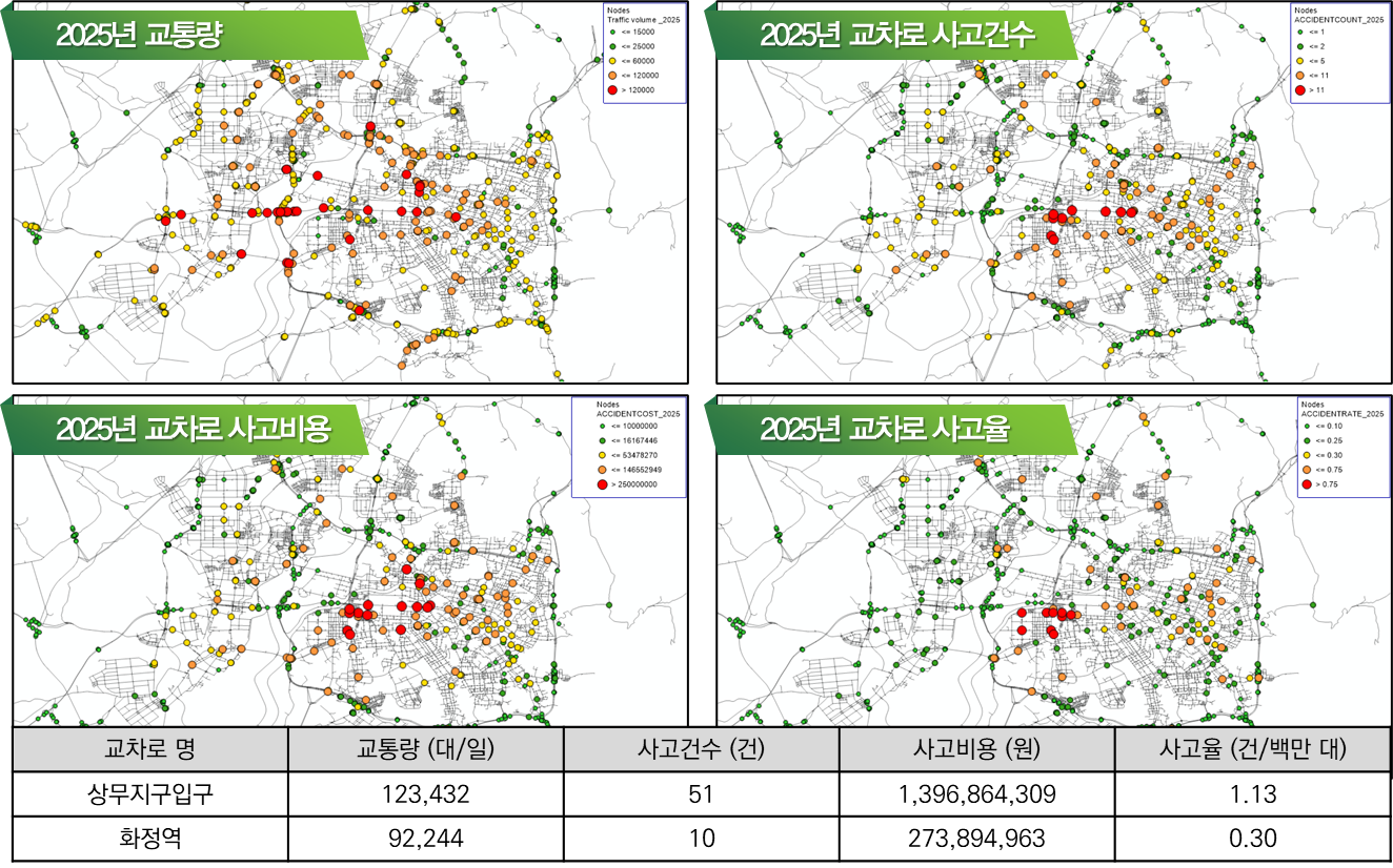 - 사고지표 기반 사고다발지점 분석 후 사고심각도 및 개선 우선순위 판단