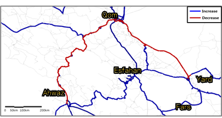 이란 철도 Esfahan~Ahwaz 화물 철도 이동 시 Tehran을 경유하던 노선이 직선화 구간으로 신설되어