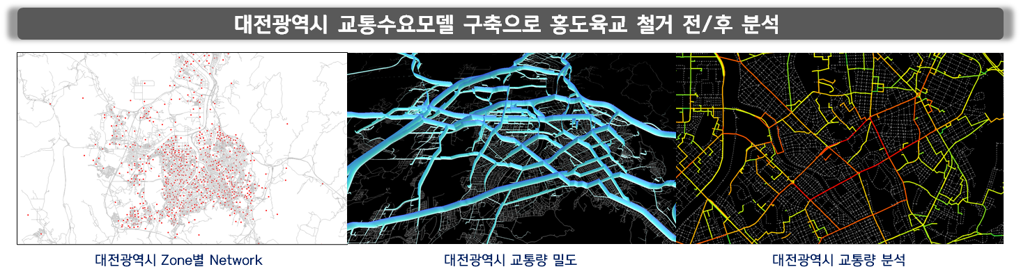 - 이에 따라 철거 사업 전 사전 교통전문 Simulation을 통한 교통량 지정체 구간/주요 우회도로 분석/교통량 전후 비교 등 다양한 분석을 통하여 효과적인 교통 대비책 마련 가능함