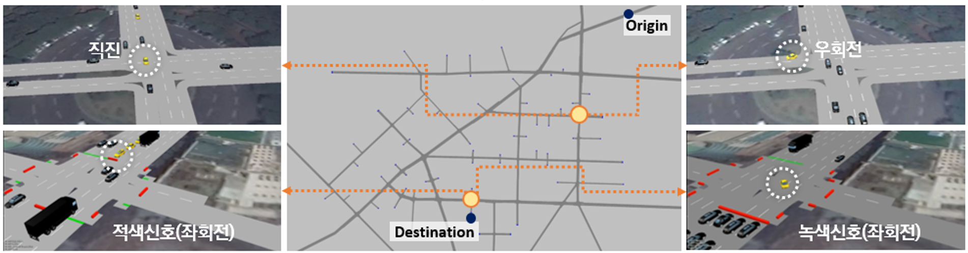 - 이는, 차량운행 과정인 Navigation-Guidance-Control 중 Guidance와 Control에 해당되나, 교통운영자 입장에서 AV 차량의 V2X 기능에 의해 구집되는 구간별 운행시간 정보를 활용하여 교통관리를 최적화하고 AV 차량을 Network 내 효율적으로 배분하는 방안이 필요함