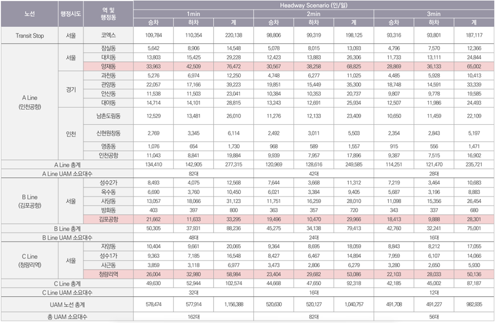 • 민간사업자 입장에서는 국토교통부와 지자체에서 제안하고 있는 UAM 노선들에 대한 운영 시나리오에 따른 사업성 분석이 필요