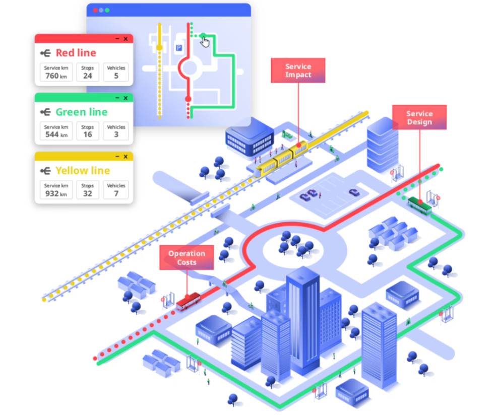 새로운 대중교통 노선 설계 및 수정부터 운영 비용 계산까지 필요한 모든 기능을 제공.