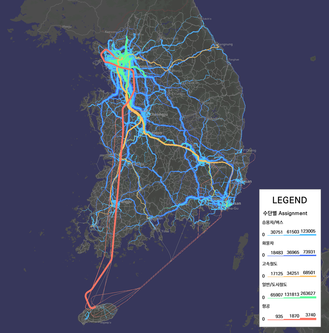 본 모델은 간선철도, 고속도로 등 국가 기간망 교통시설의 계획과 수요분석에 활용 가능