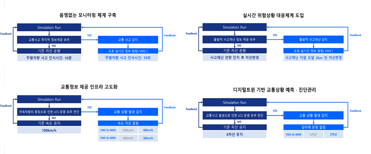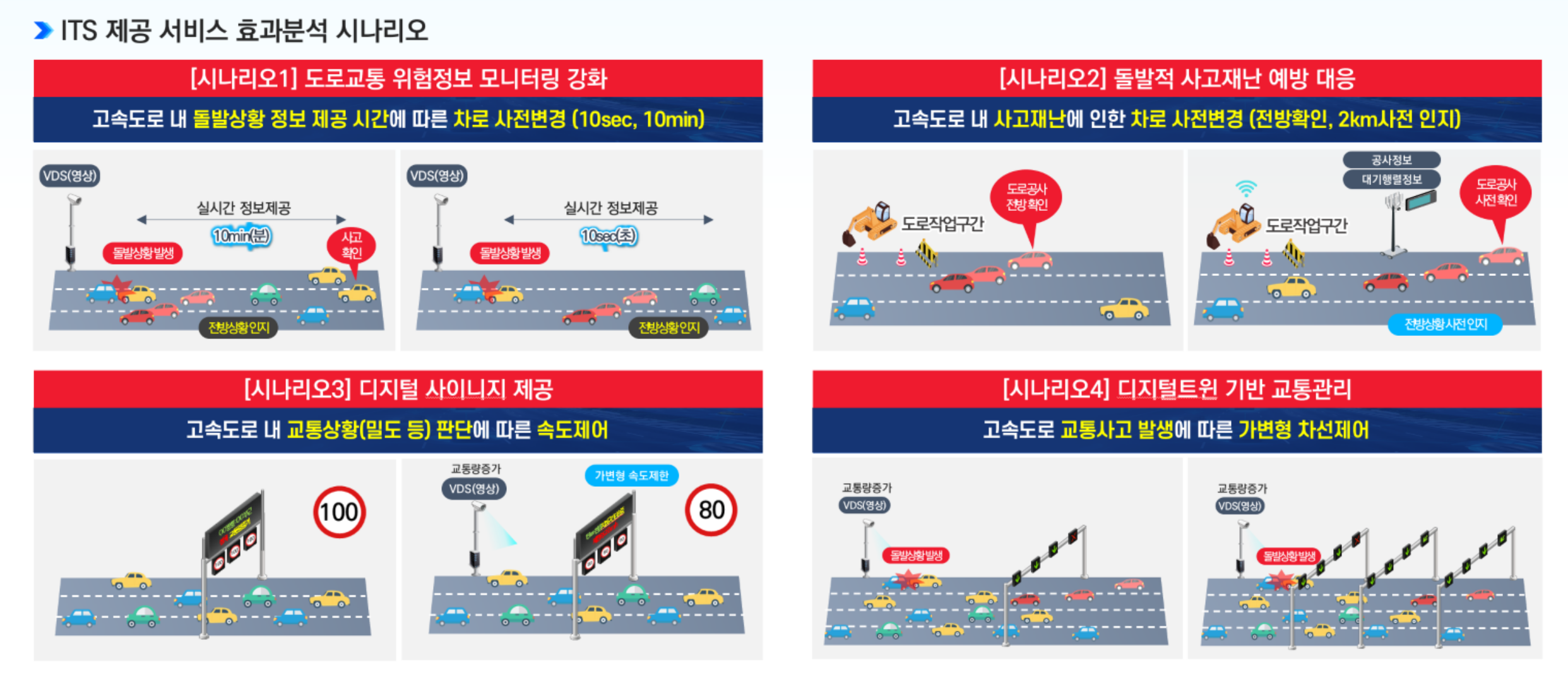 - 고속도로 본선류에 ITS를 도입을 통해 고속도로 내에서 발생할 수 있는 상황에 대한 실질적인 해결방안을 제시함