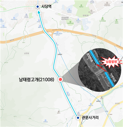 - 과천대로 서울구간 중앙버스전용차로 개통으로 인한 과천시 가로변 버스전용차로와 차선의 연속성 약화 및 연계성이 부족함