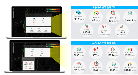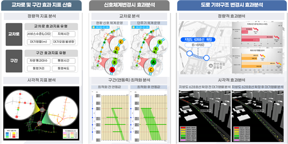 - 교통분석 시뮬레이션 정량적 분석을 통해 산출된 분석지표 시각적 표출