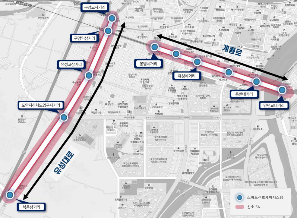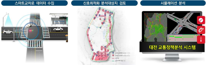 - 대전시는 SA 그룹별 신호관리와 스마트교차로 구축을 통해 교통체계의 효율성을 높였으며, 디지털트윈 시뮬레이션 교통정책분석 시스템을 활용하여 신호체계 개선을 위한 최적신호 운영에 따른 효과를 분석함