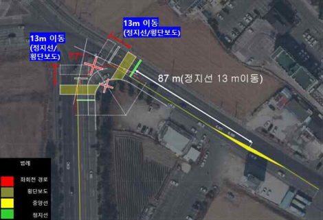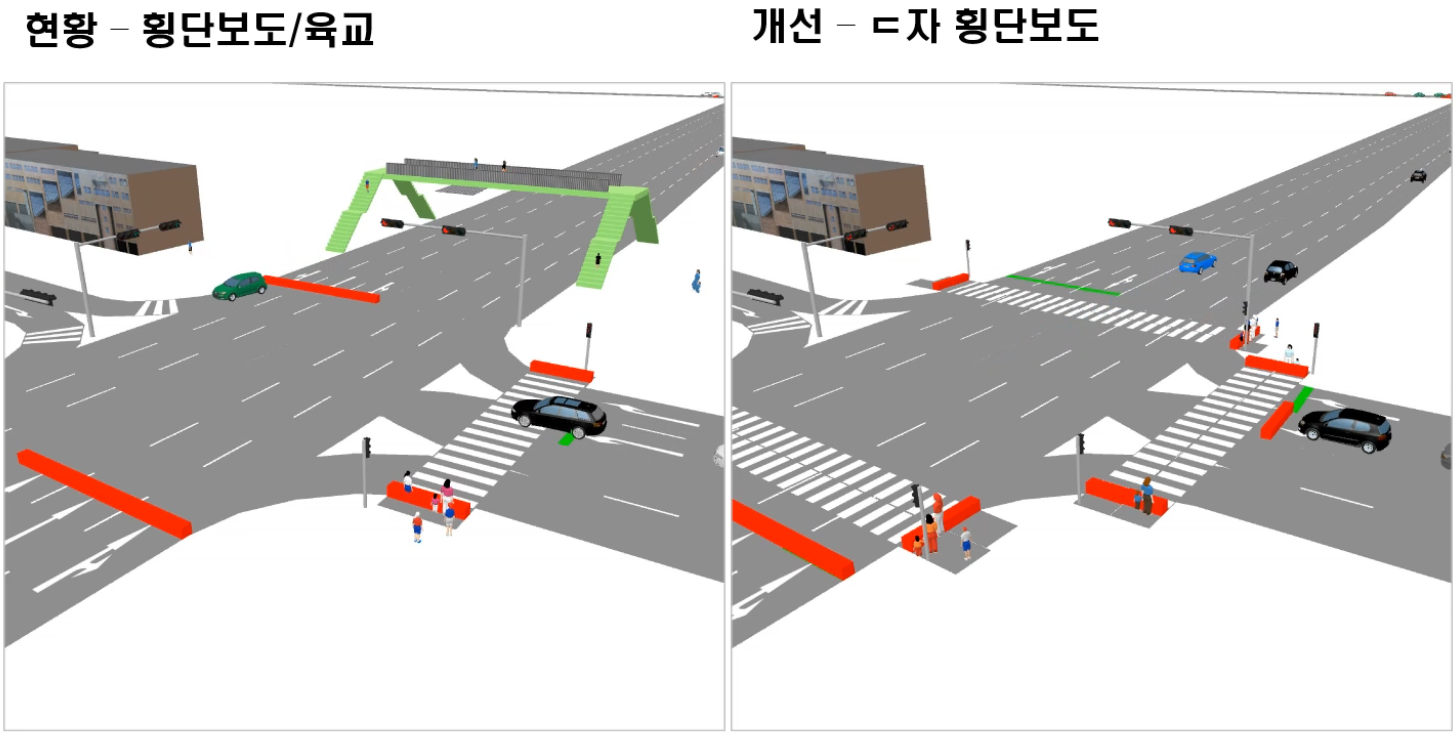 율곡초 보행체계 개선(‘23.09) - 율곡초 앞 육교 철거에 따른 보행체계 개선 시나리오 효과분석 - ㄷ자횡단보도 실증 도입