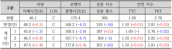 - 차량/보행 효과지표 및 안전지수 비교분석