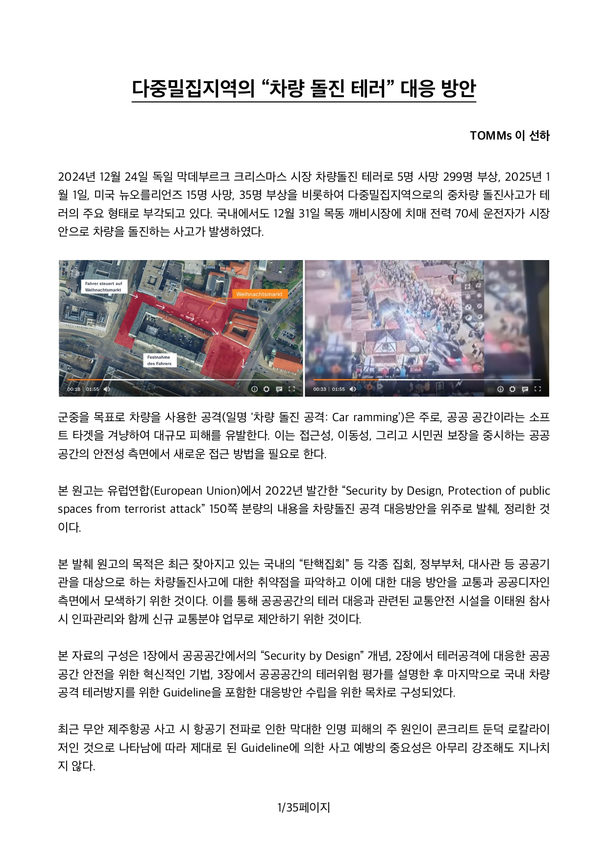다중밀집지역의 “차량 돌진 테러” 대응 방안