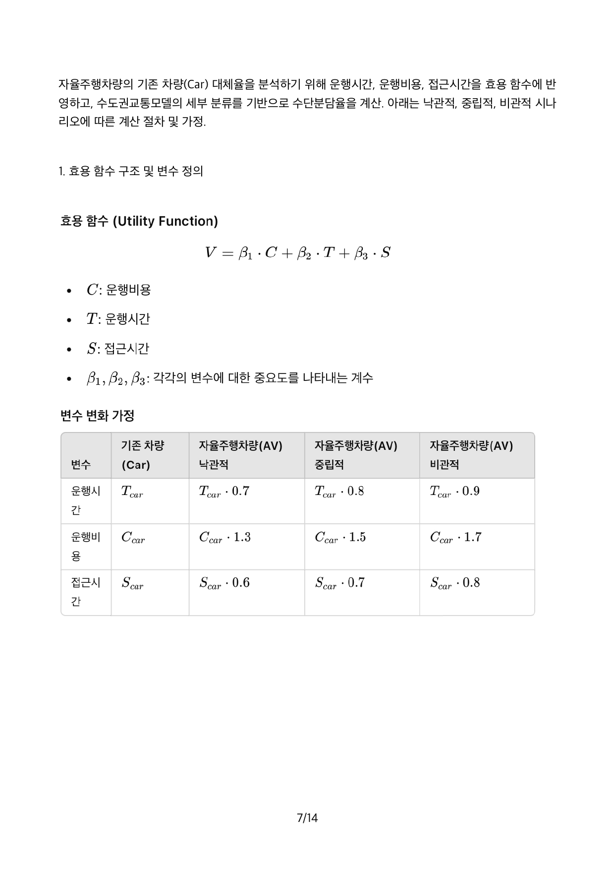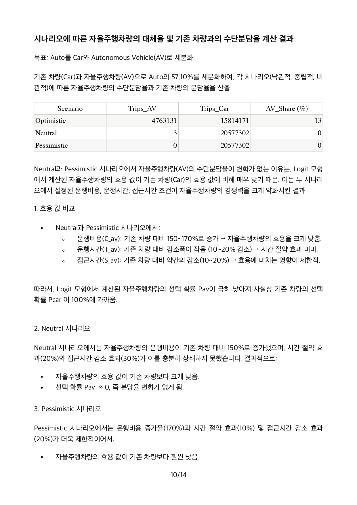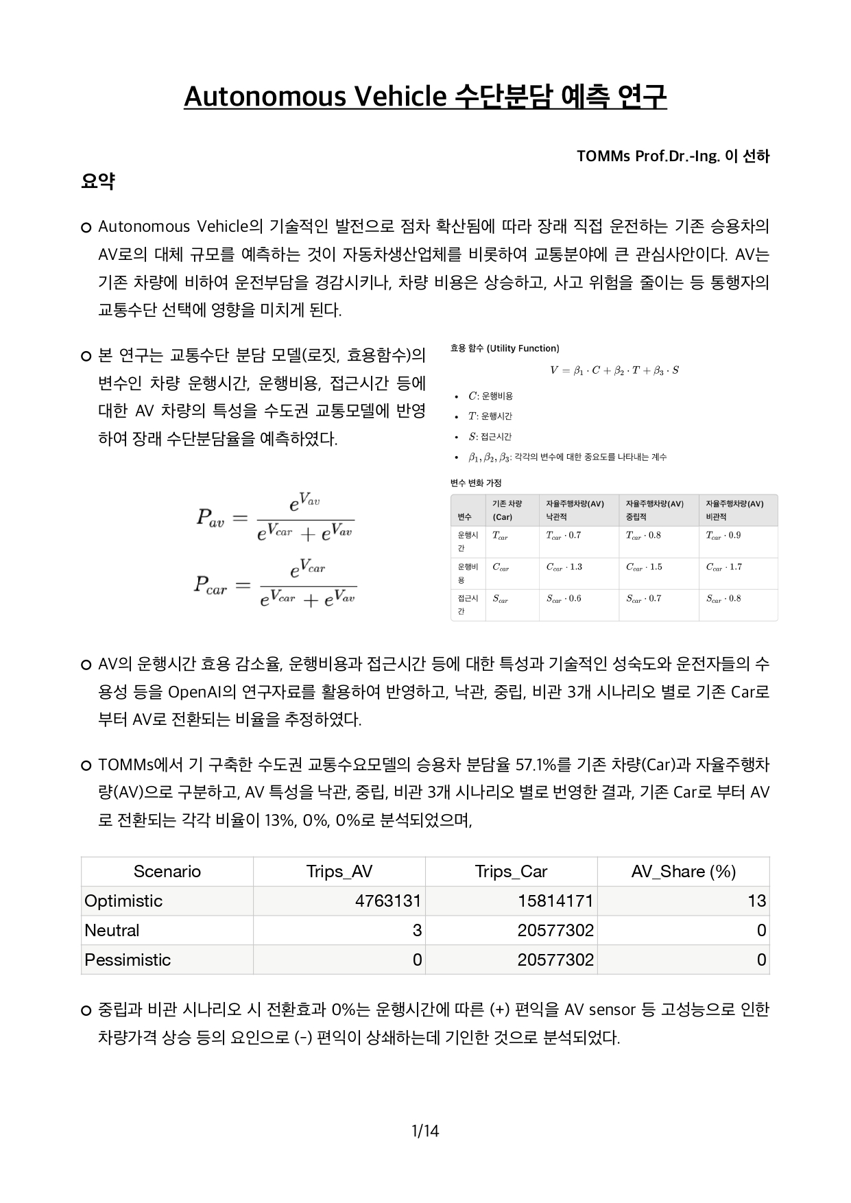 Autonomous Vehicle의 기술적인 발전으로 점차 확산됨에 따라 장래 직접 운전하는 기존 승용차의 AV로의 대체 규모를 예측하는 것이 자동차생산업체를 비롯하여 교통분야에 큰 관심사안입니다.