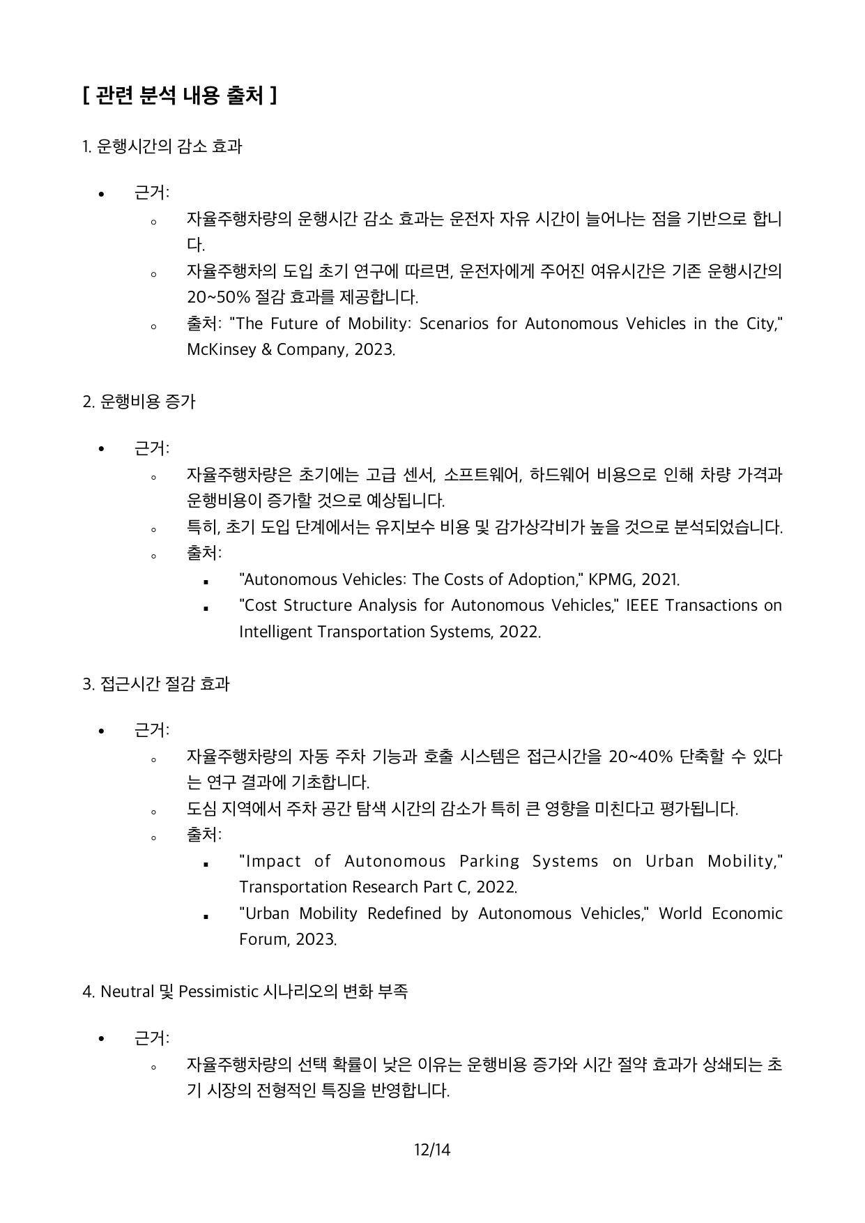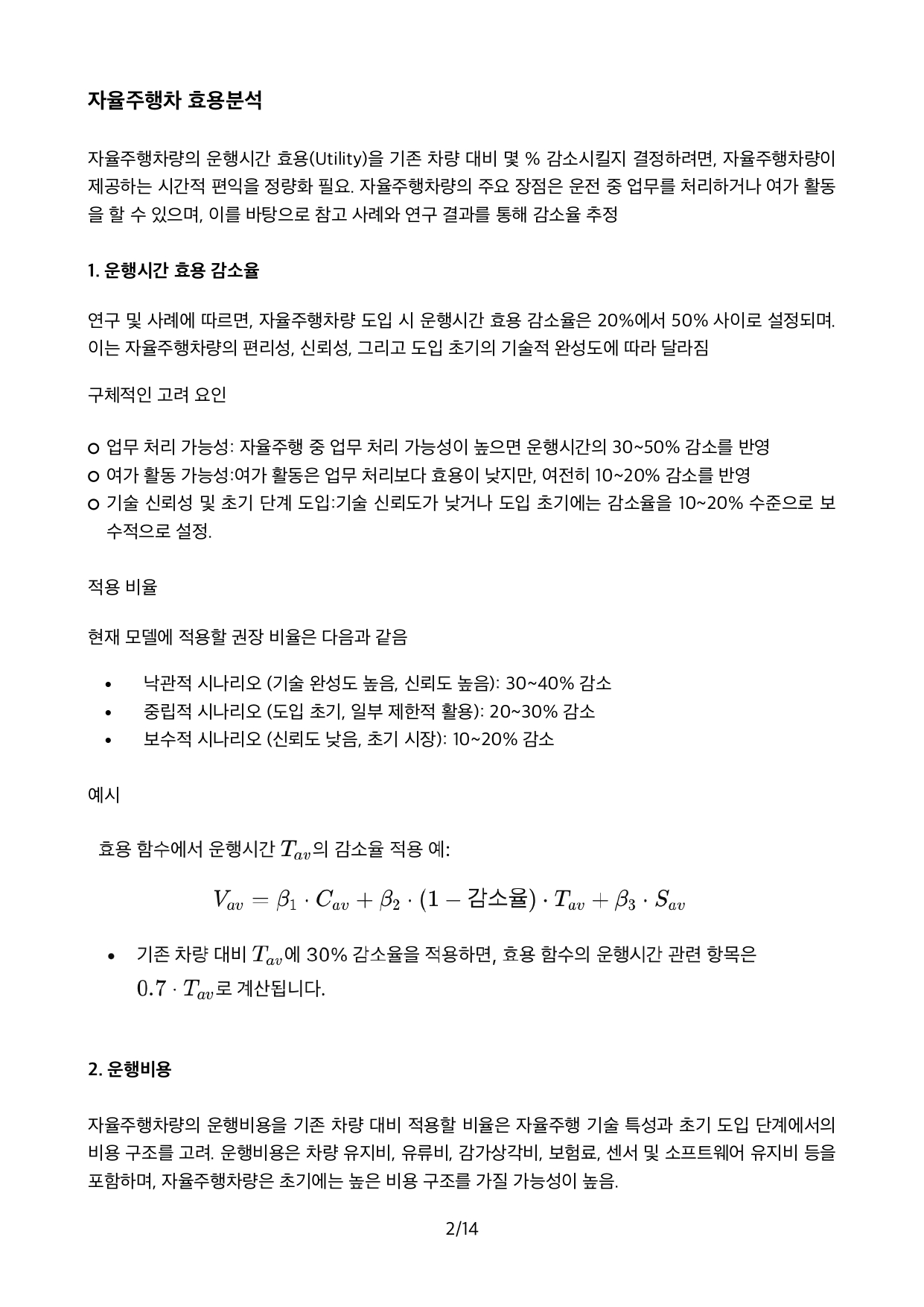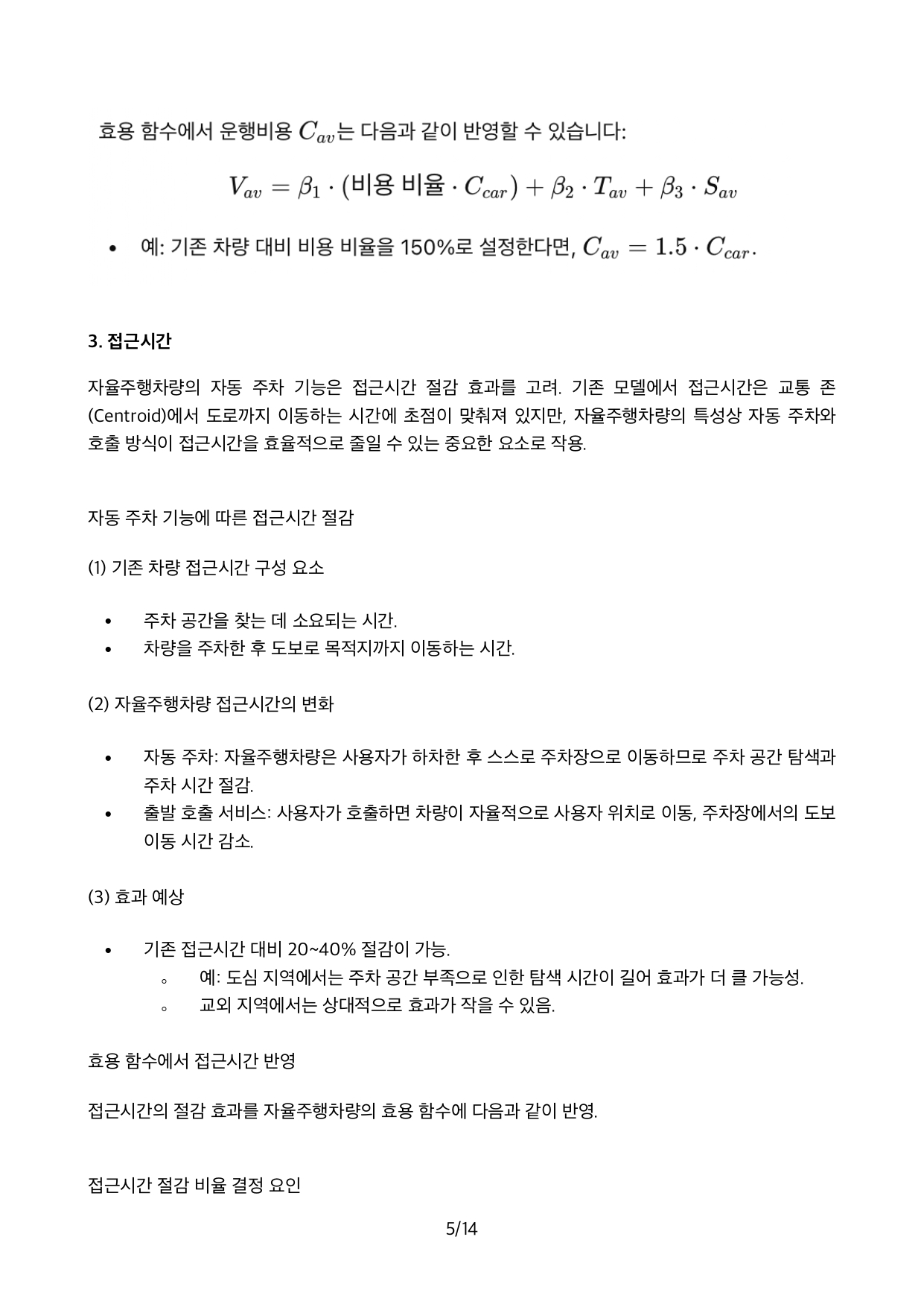 Autonomous Vehicle의 기술적인 발전으로 점차 확산됨에 따라 장래 직접 운전하는 기존 승용차의 AV로의 대체 규모를 예측하는 것이 자동차생산업체를 비롯하여 교통분야에 큰 관심사안입니다.